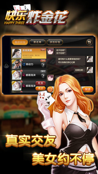 炸金花可实现真人在线语音互动功能,只要完成相关信息认证就能解锁真人语音赛场。平台诚邀了多位美女玩家助阵,每天的赛场都十分火爆,每个房间的玩家人数都是爆满,想要快速入局的话可注册VIP账号,开通绿色通道,无需等待直接入场,与各种高颜值玩家在线语音对决。