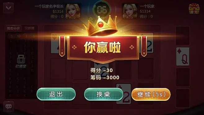 - 游戏结束后,点数最大的玩家获胜,赢得本轮下注的筹码。