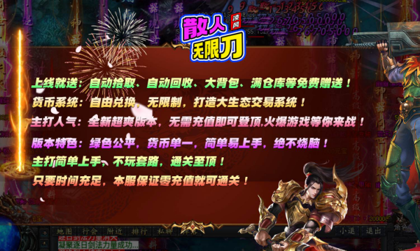 3、经典爆装机制,怪物掉落装备直接显示在地面,抢装备捡宝贝全凭手速,完美还原当年打宝激情,稀有神装可交易或拍卖。
