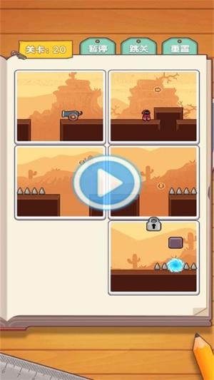 1、通过点击屏幕选择并拖动地图块进行排列组合,调整小红帽前进路径,避开陷阱并通往传送门。