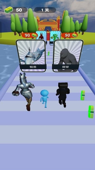 1、核心玩法围绕"跑酷收集+卡牌对战"展开,移动过程中需精准操作避开障碍,同时积累能量召唤援军进行自动战斗。